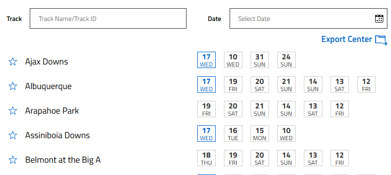 When you launch Formulator, you will be brought to a page listing all North American tracks currently running (see screenshot below).
